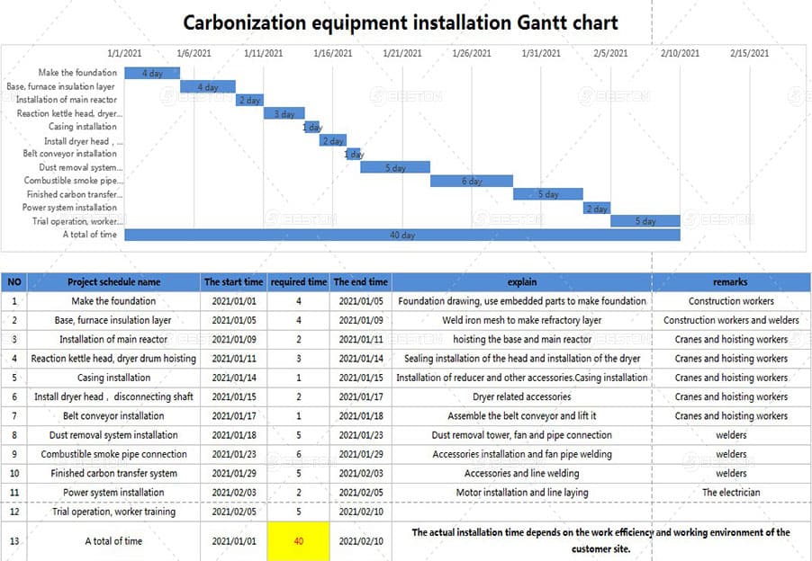 連續(xù)炭化爐是外熱式炭化爐,原料在主爐內(nèi)被炭化,不與火直接接觸,炭化主爐內(nèi)為貧氧環(huán)境,達(dá)不到完全無氧炭化。